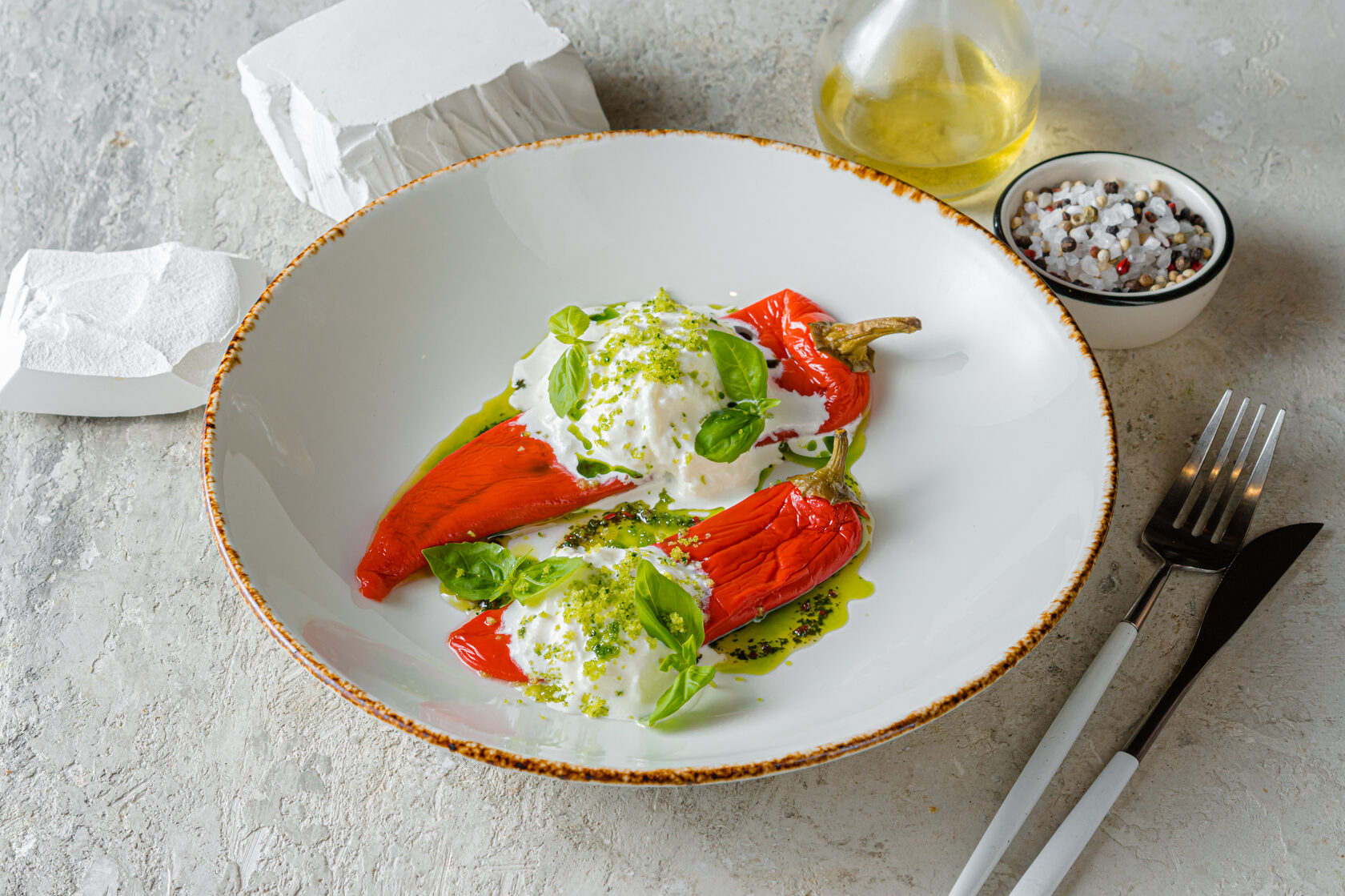 В блоке «Будущее» мы представляем запечённые перцы рамиро с сыром страчателла. Это блюдо пока только планируется к включению в наше основное меню, но уже сейчас мы уверены в его успехе. Перцы Рамиро — сладкие и ароматные овощи, идеально подходящие для запекания. Мы наполняем их нежным сыром страчателла, который добавляет кремовость и глубину вкуса. Это сочетание порадует гурманов и станет символом нашего стремления к экспериментам и новым гастрономическим открытиям.