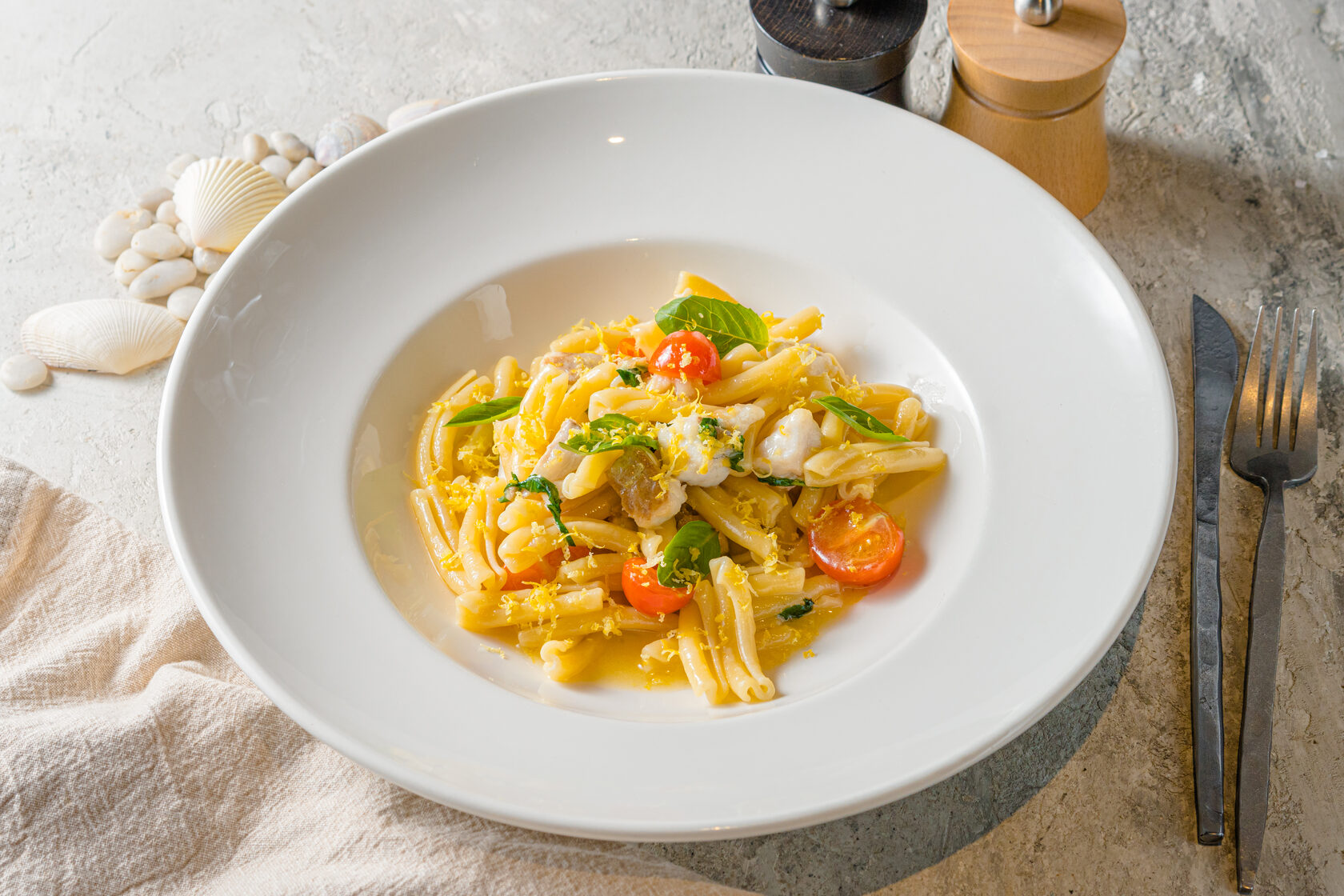 В нашем меню мы решили вернуть пасту казаречче с сибасом — одно из самых популярных блюд среди наших гостей. Казаречче — традиционная паста из Апулии, прекрасно сочетающаяся с нежным мясом сибаса. Мы используем только свежие ингредиенты, чтобы создать гармонию вкусов, которая перенесет вас в атмосферу солнечной Италии. Это блюдо было исключено из основного меню, но его возвращение на фестиваль позволит многим вспомнить незабываемые моменты, связанные с его дегустацией.